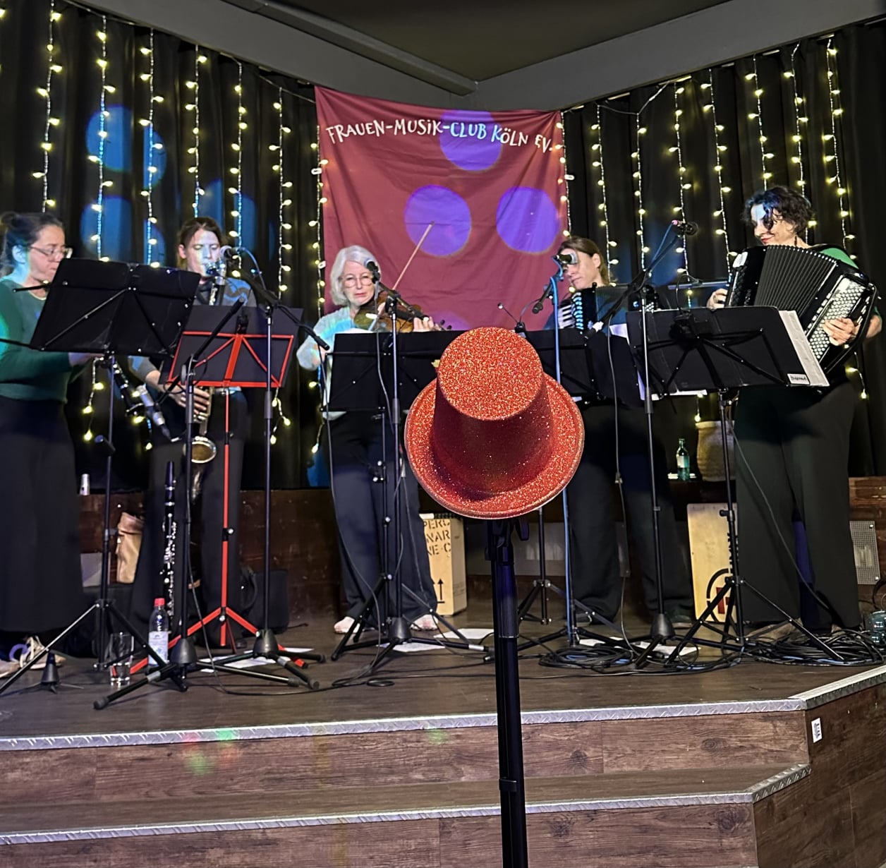 Wir stellen Bühne, PA und Tontechnikerin sowie nach Anmeldung Instrumente wie Schlagzeug und/oder E-Piano.