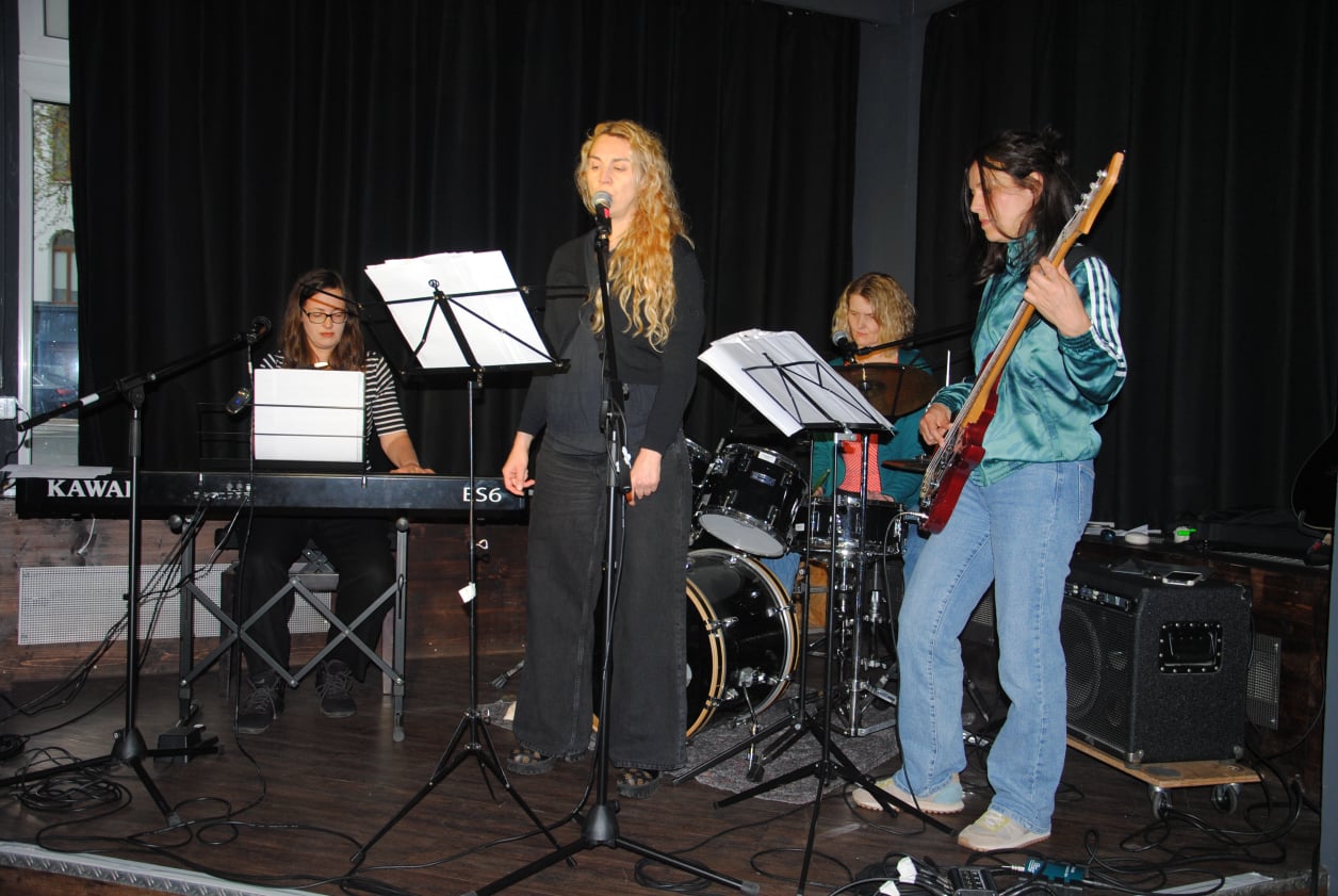 Wir stellen Bühne, PA und Tontechnikerin sowie nach Anmeldung Instrumente wie Schlagzeug und/oder E-Piano.